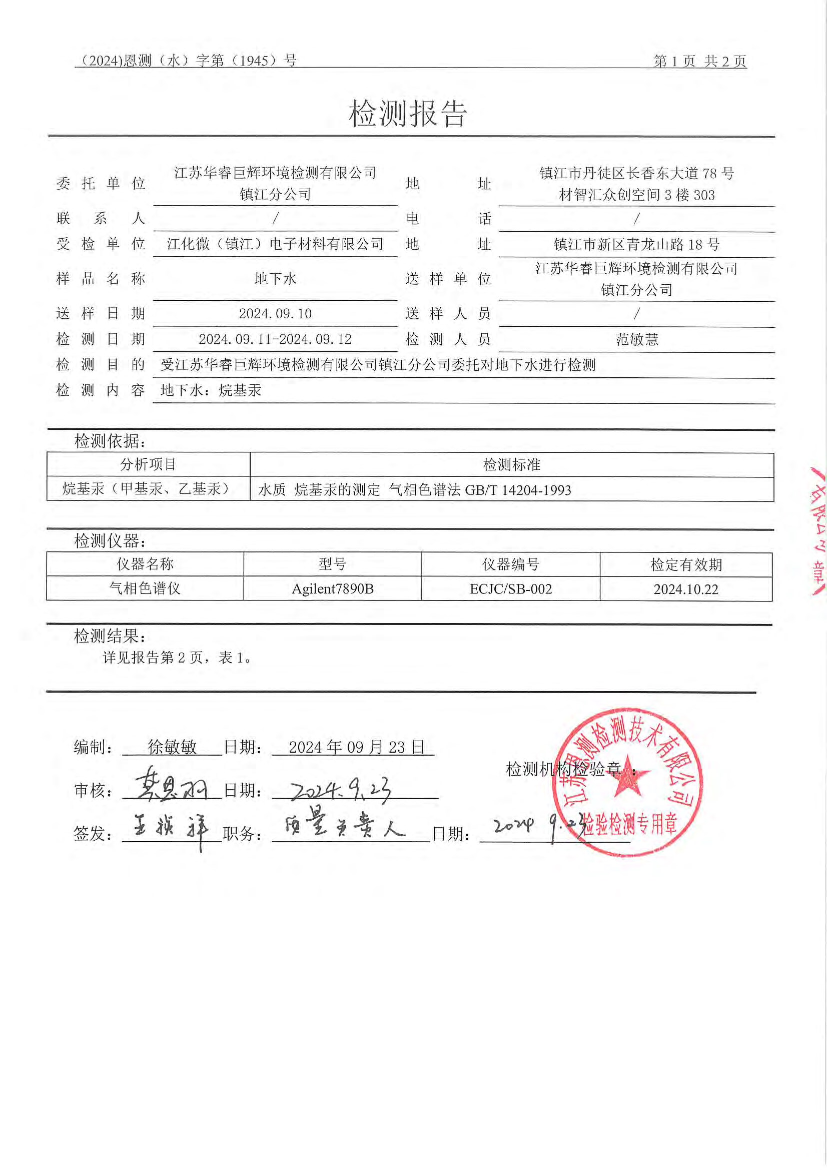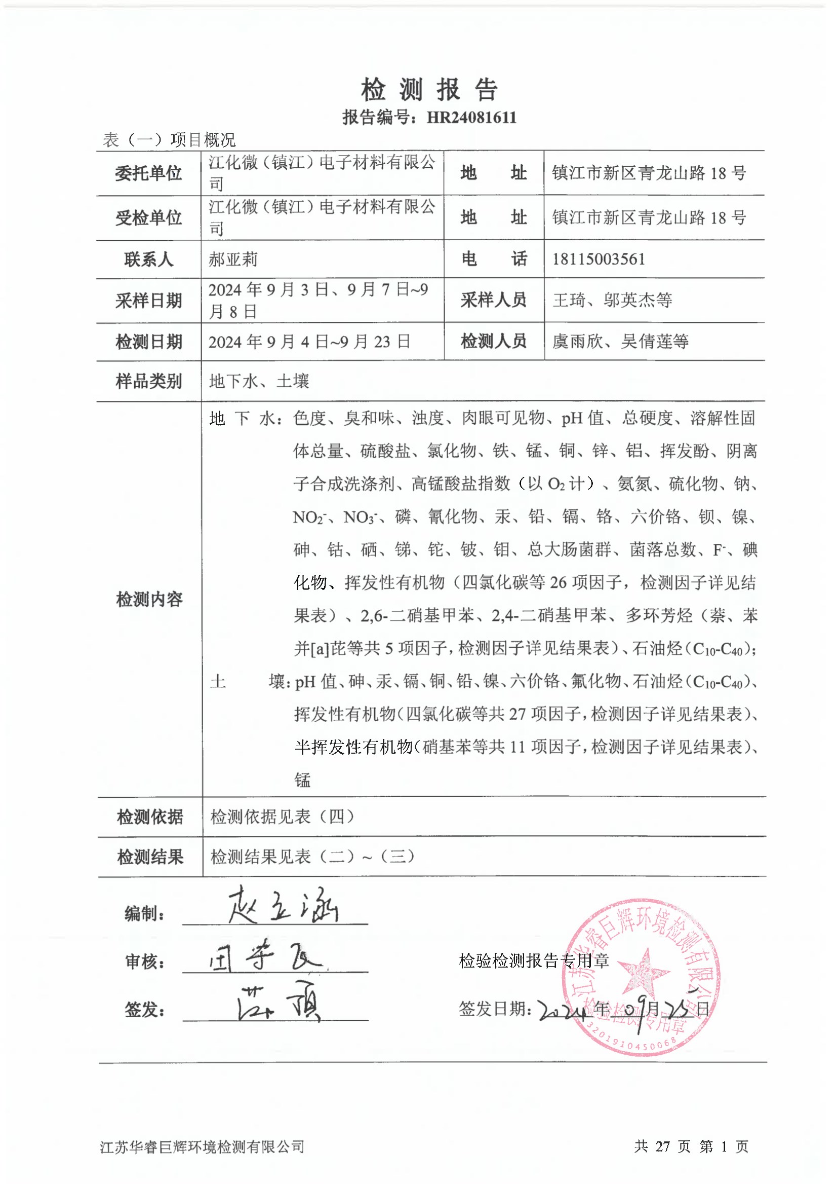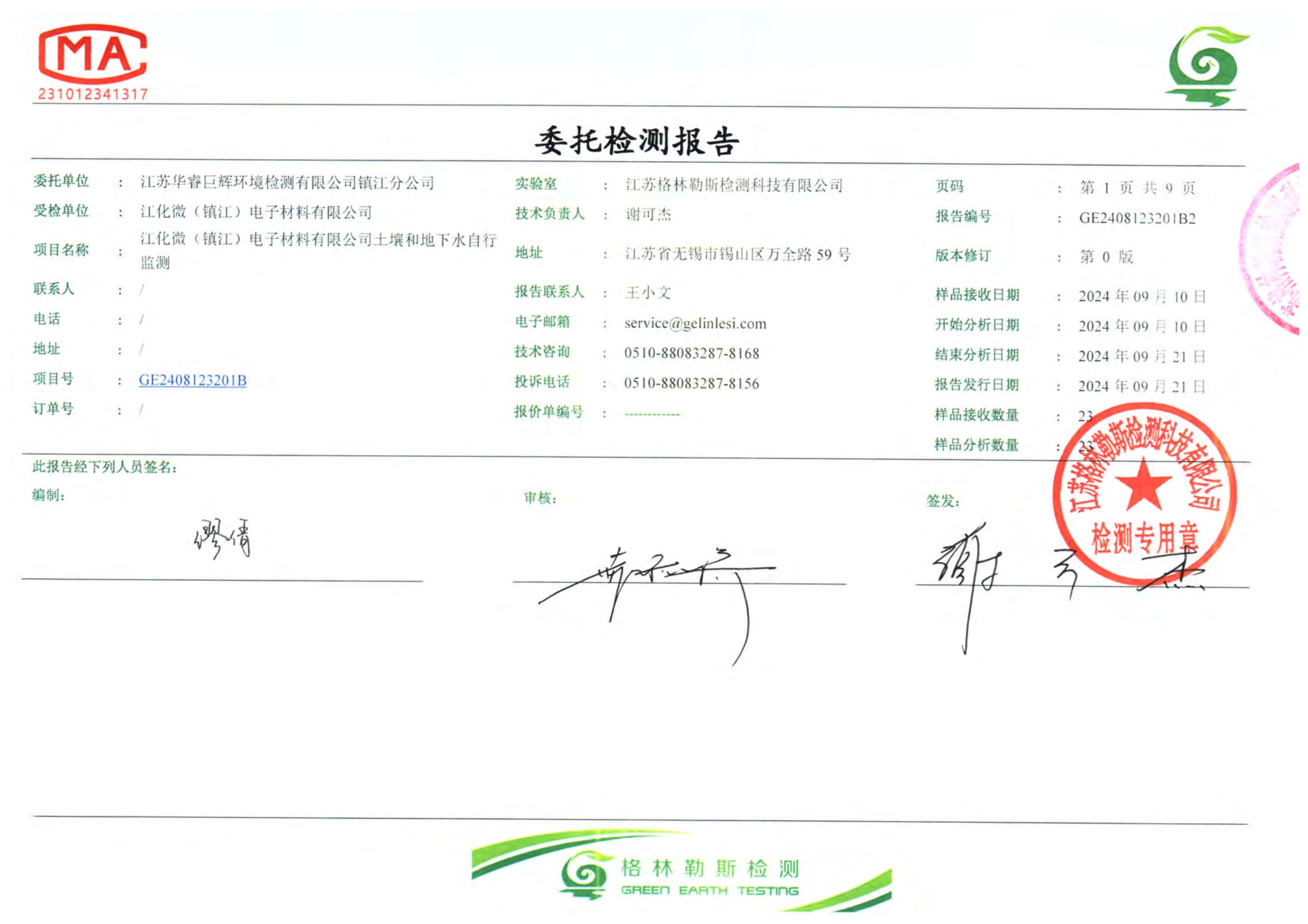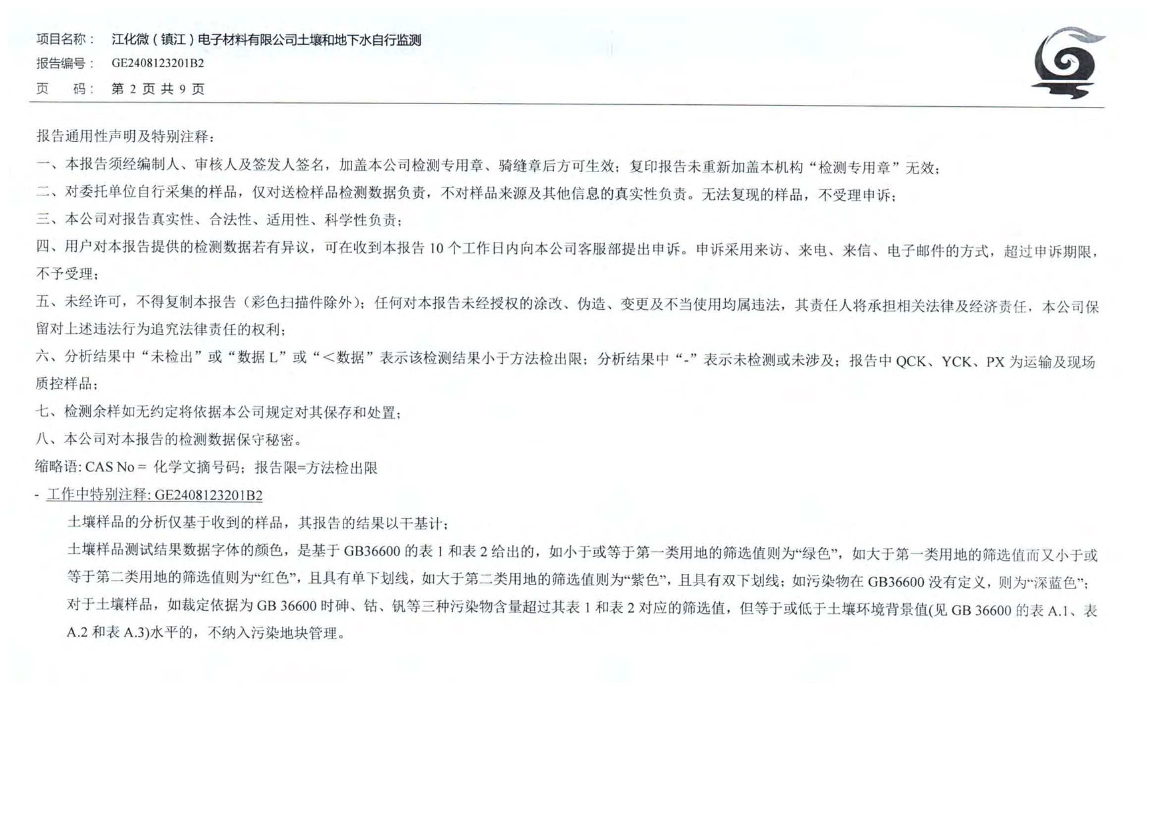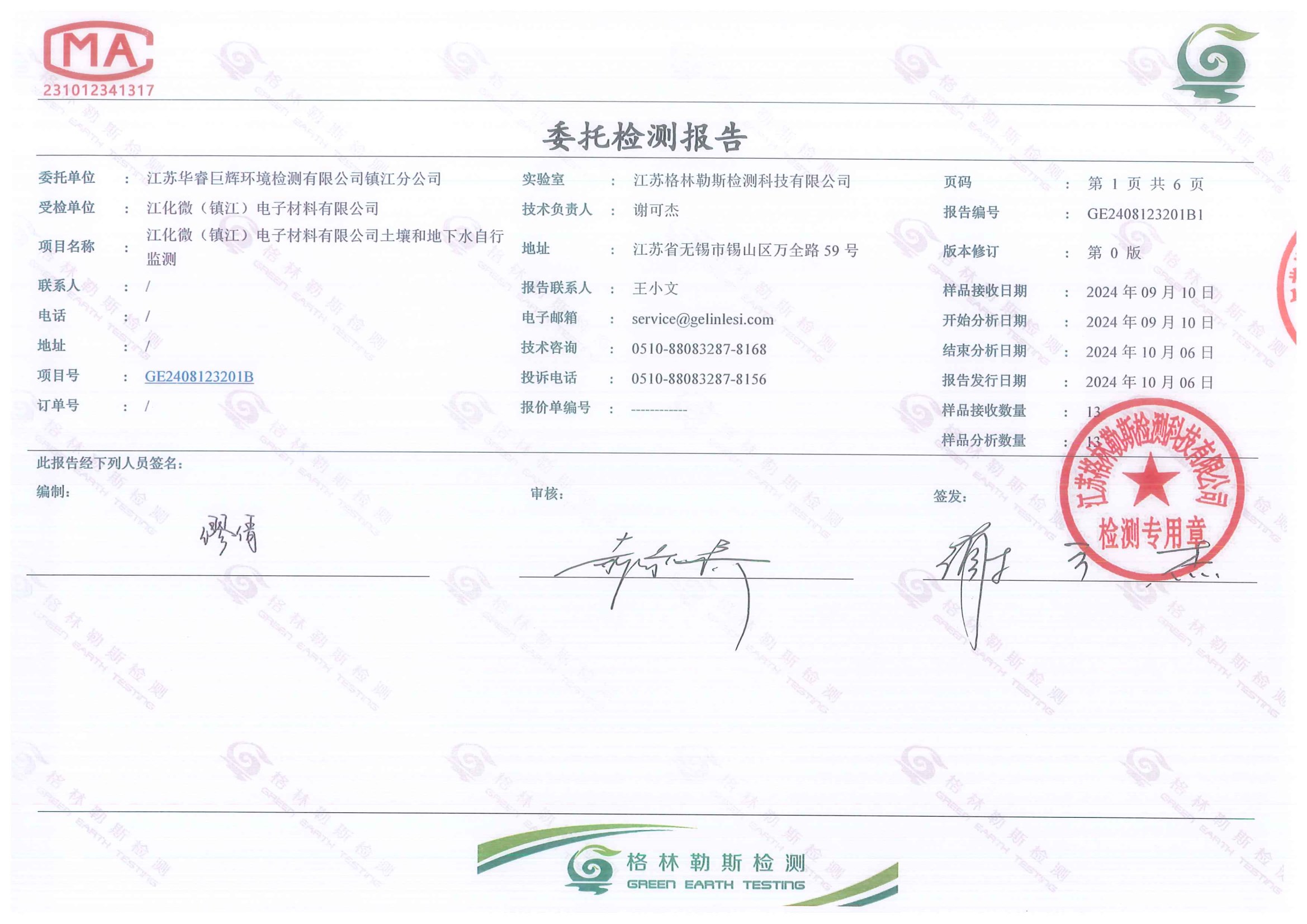 江化微2024年土壤地下水检测报告