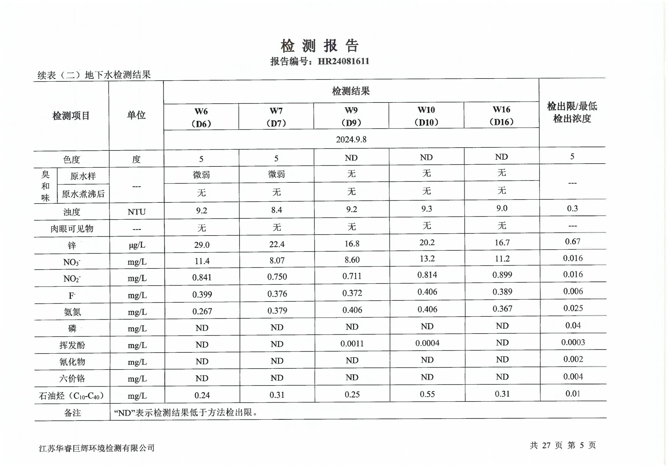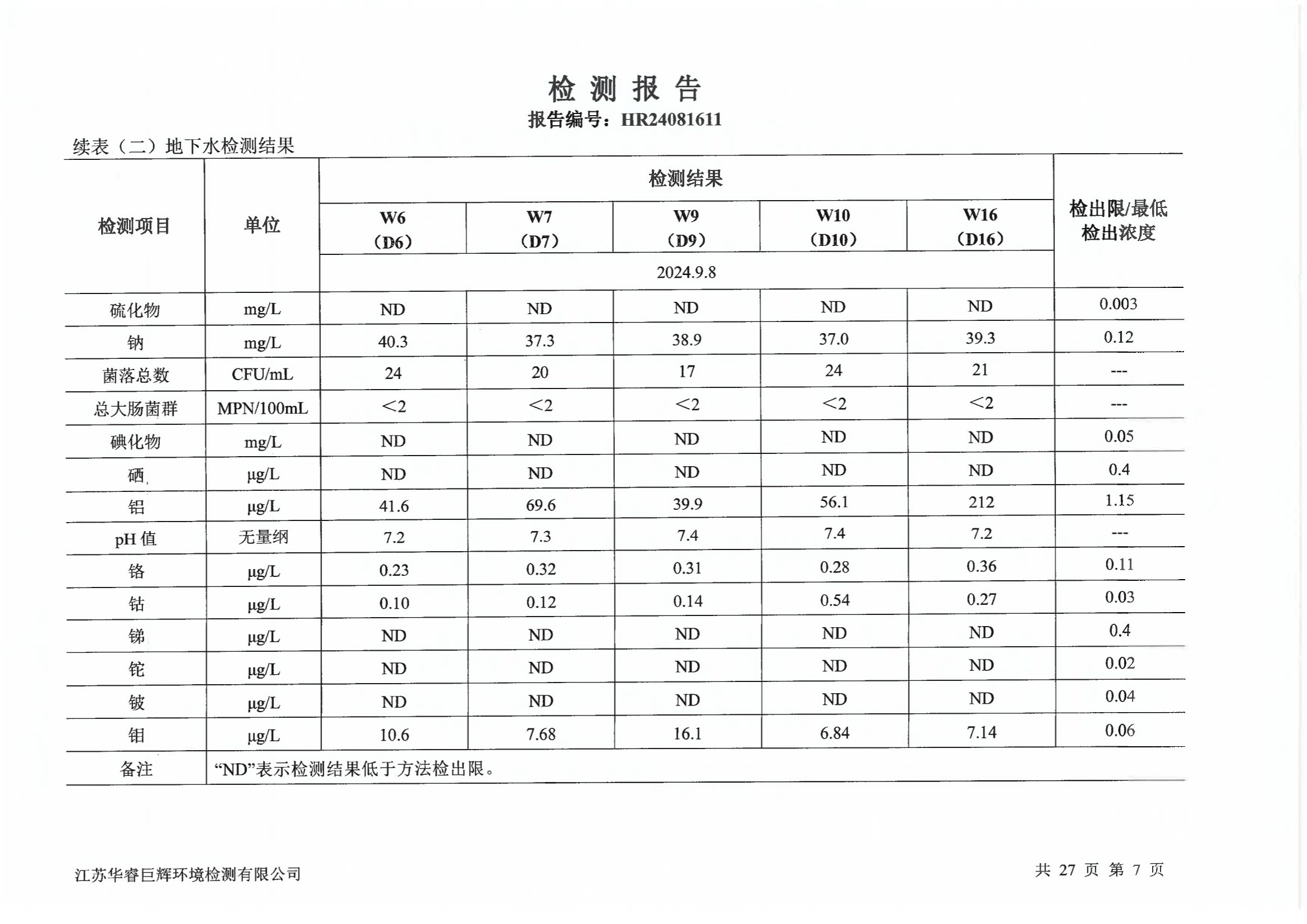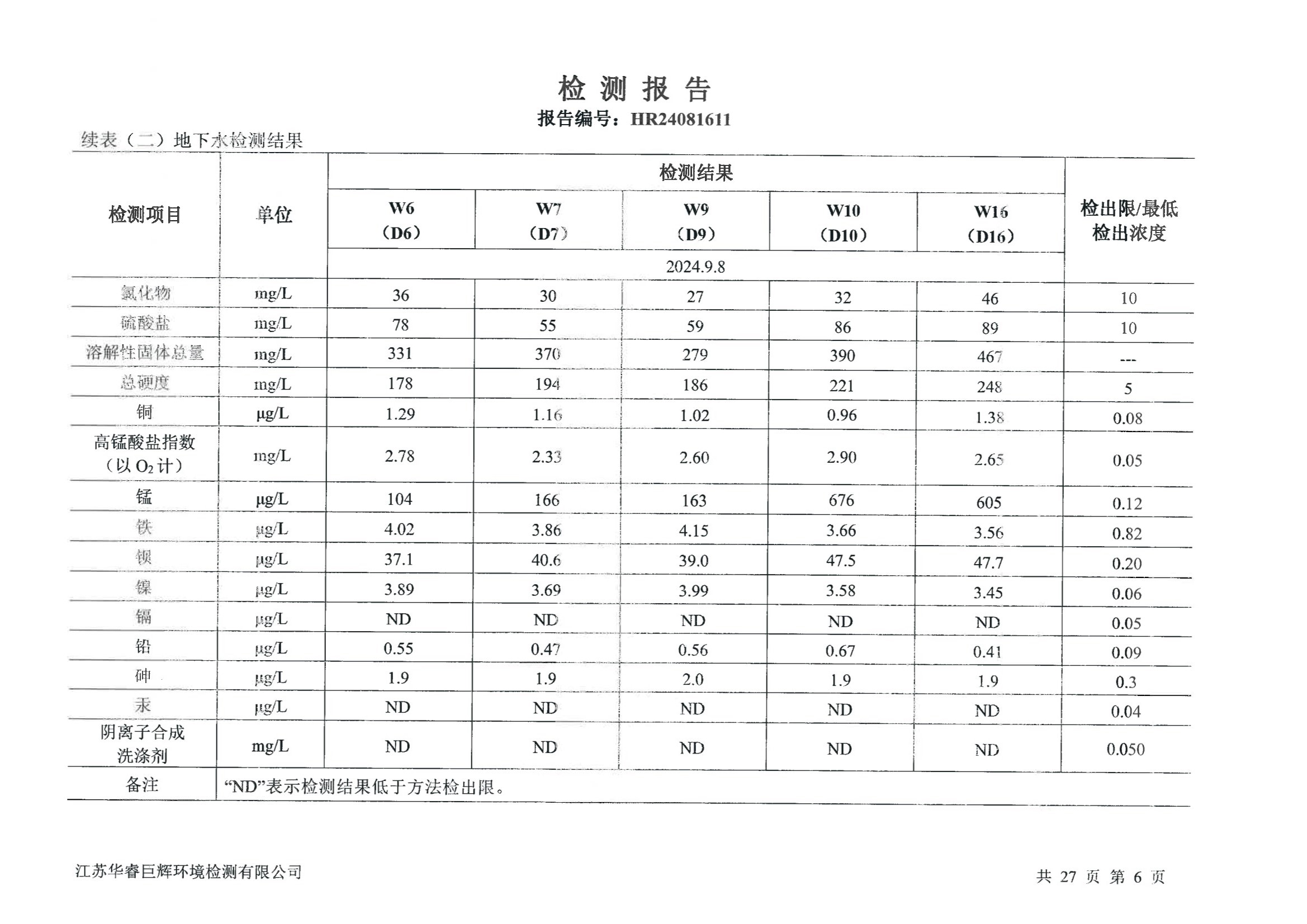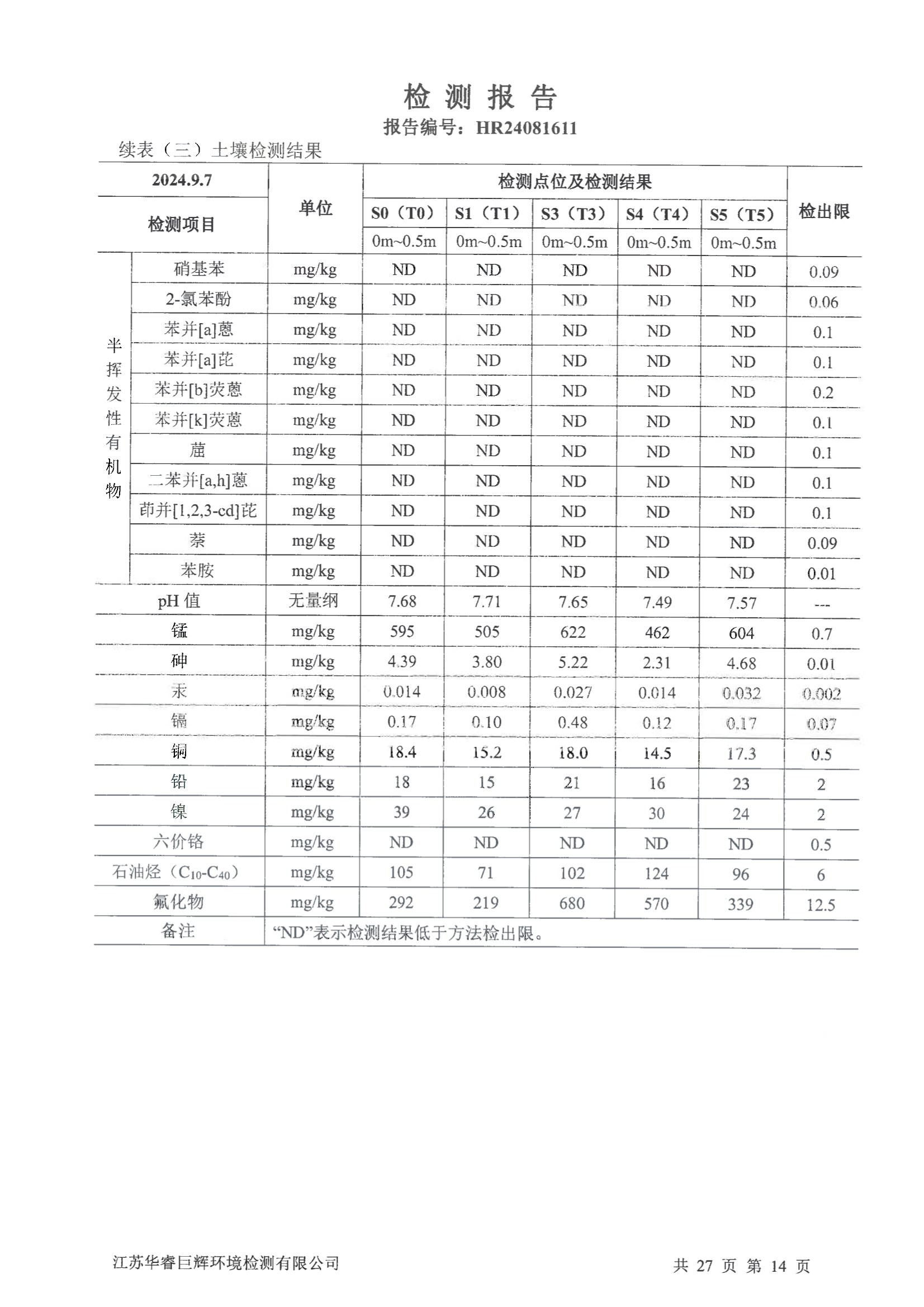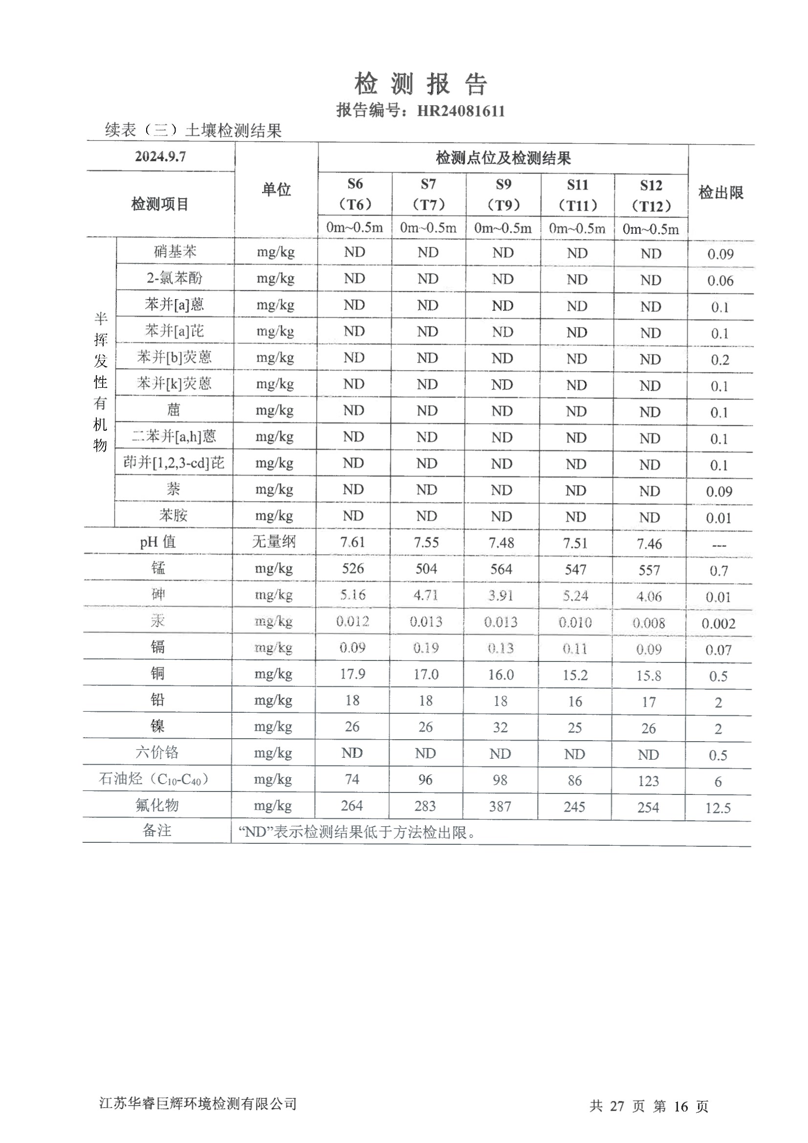 江化微2024年土壤地下水检测报告