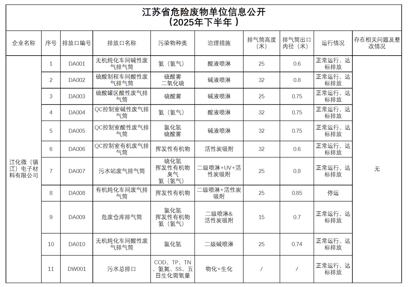 2025年下半年污染防治措施信息公开